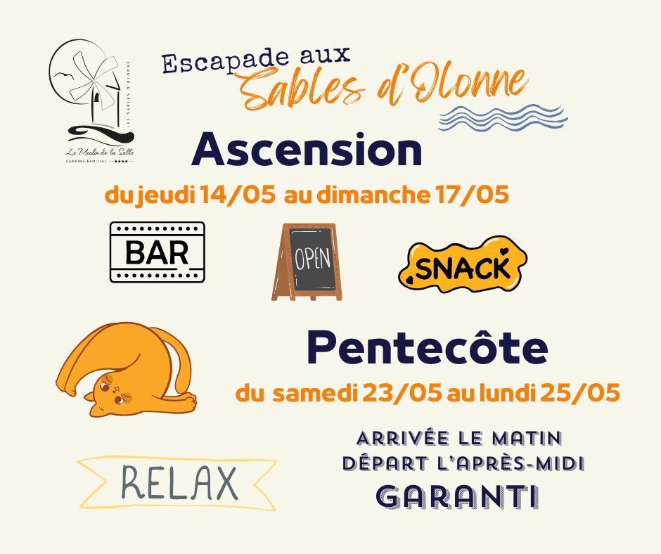 Situé aux Sables d’Olonne, célèbre station balnéaire vendéenne, et à moins de 3 km des plages et des ports, le Camping Le Moulin de la Salle vous propose des vacances tout confort, en famille, à proximité de la mer. Vous pourrez vous y rendre facilement à vélo, en empruntant les nombreuses pistes cyclables situées à proximité du camping.